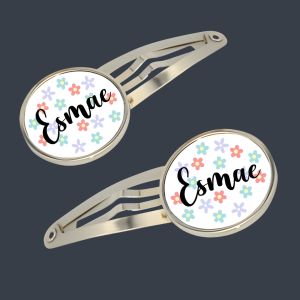 Complete your hair look with our gorgeous hair clips. Ideal for styling and keeping hair in place. Snaps open and shut for easy use. Perfect for gifting. Metal. Set of 2. Each: L5 x diam. 2.5cm. Personalise up to 15 characters, flower design is fixed.